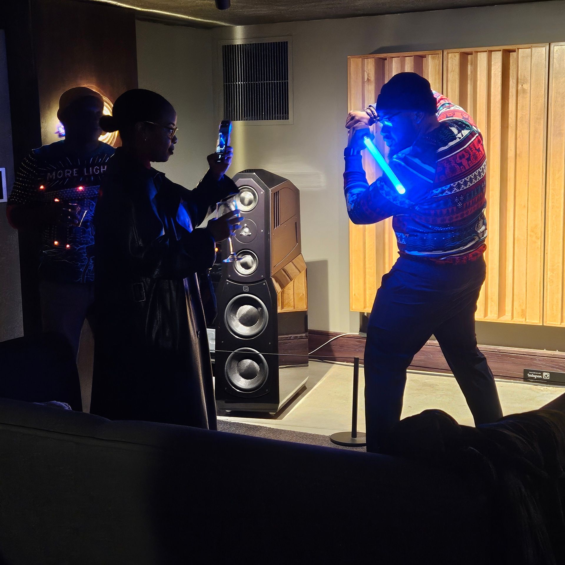 As the night shifted from conversation to celebration, the culture came into focus. Jazz and R&B eased into hip‑hop and disco. Dance‑offs broke out. Someone pulled out Star Wars’ light sabres. Someone else demoed a project mid‑conversation.